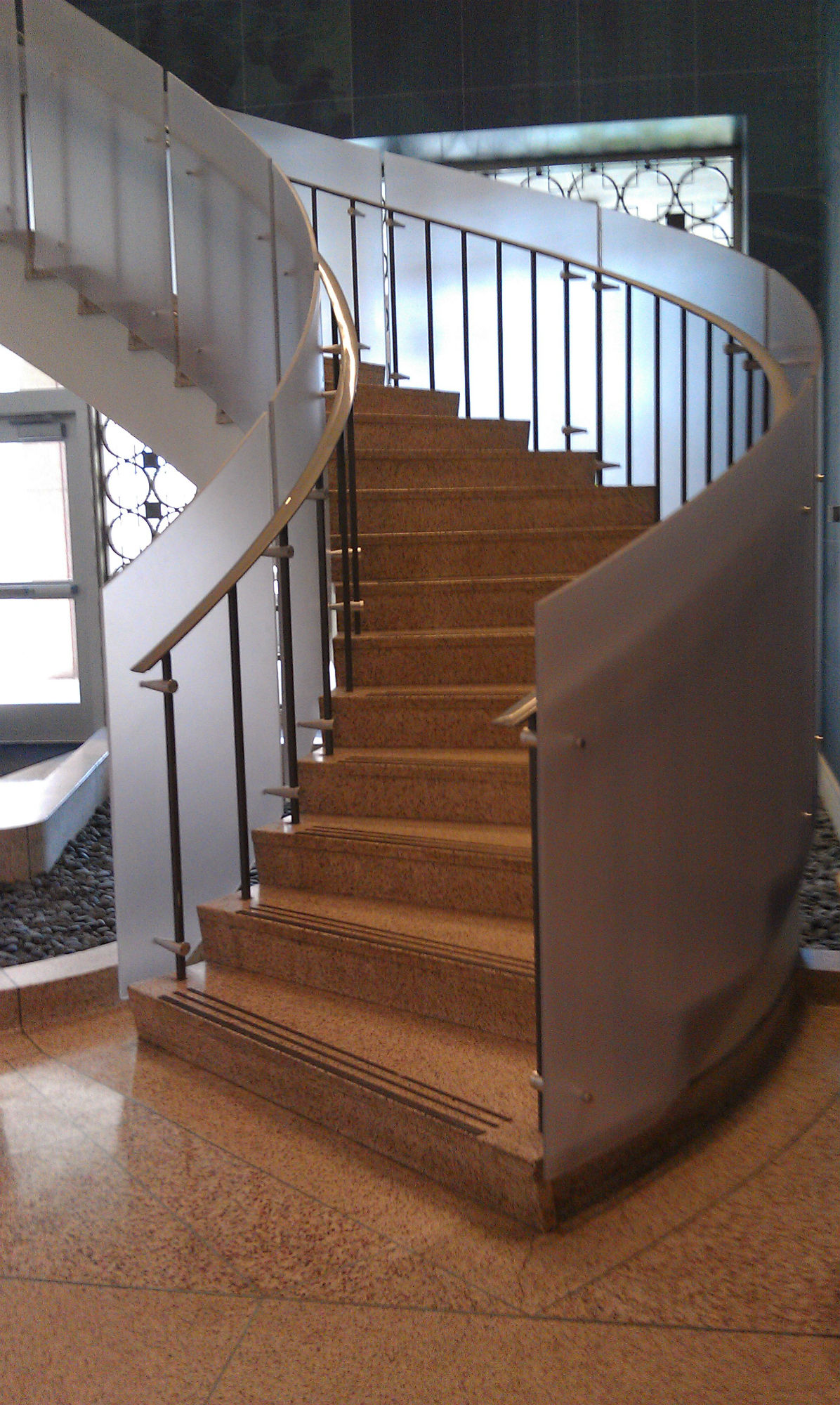 - Our first staircase project. Formed templates created in field to ensure correct radius and fitting.